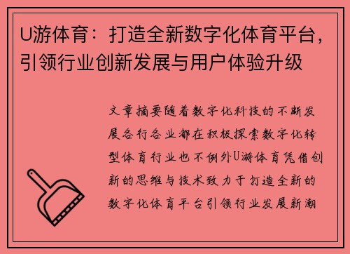 U游体育:打造全新数字化体育平台,引领行业创新发展与用户体验升级