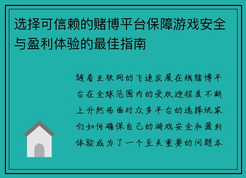 选择可信赖的赌博平台保障游戏安全与盈利体验的最佳指南