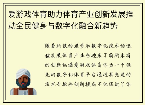 爱游戏体育助力体育产业创新发展推动全民健身与数字化融合新趋势